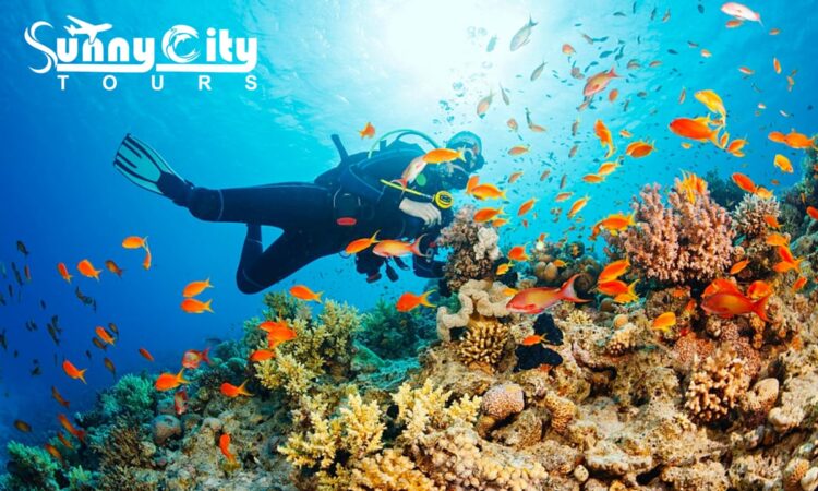 Pick you up from the hotel by air-conditioned vehicle the marina to take Diving equipment first, then take the big boat to the first location for the first dive , On the wat to the first diving spot the instructor will explain to you everything about diving , having open buffet lunch, moving to the second diving spot , you will be diving for around 20 minuets each time at depth around 7 meters , then be back to the hotel by air-conditioning vehicle.